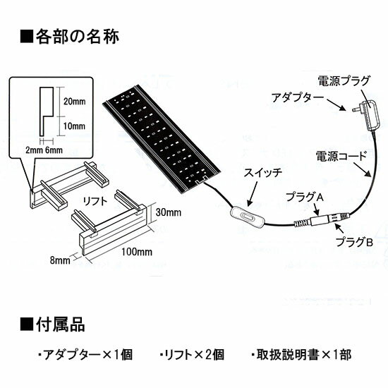 ー特長ー ●特許技術を持つ印刷会社と共同開発! ●Agナノ粒子インクを通電させた基盤配線フリー! ●素子の発光効率だけでなく、 電気伝導率や安定性を重視した回路設計! ●厚さ1.5mmとにかく薄い!! ※レール部を除く最薄部 ●水にも強いIP67! ※保護等級IP67※素子部分に限る ●約40,000時間長寿命! ※LED素子のみ ●スライド式専用リフト付 高さ30mm水槽幅最大+70mm対応!! ●枠付水槽、フレームレス水槽対応。